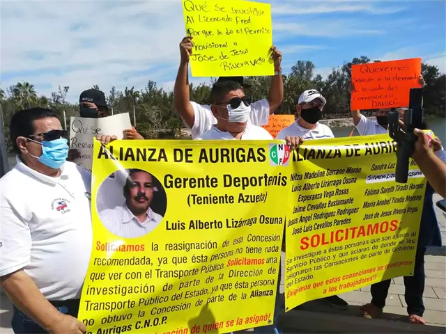 Mazatlán, Sin.- Un grupo de alrededor de 15 trabajadores al volante de aurigas se manifestó pacíficamente esta mañana.