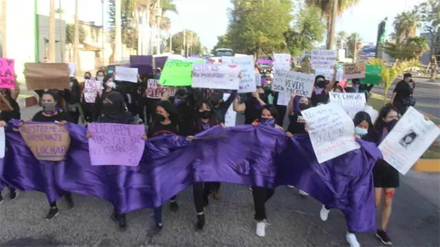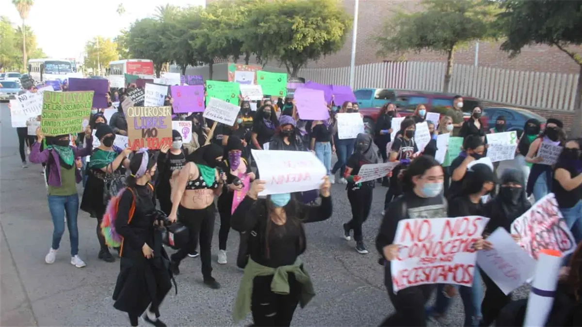 Los Mochis, Sin.- Más de 100 jóvenes feministas salieron a las calles de Los Mochis, para exigir justicia para las mujeres víctimas de desaparición forzada, de feminicidios y de la violencia de género.
