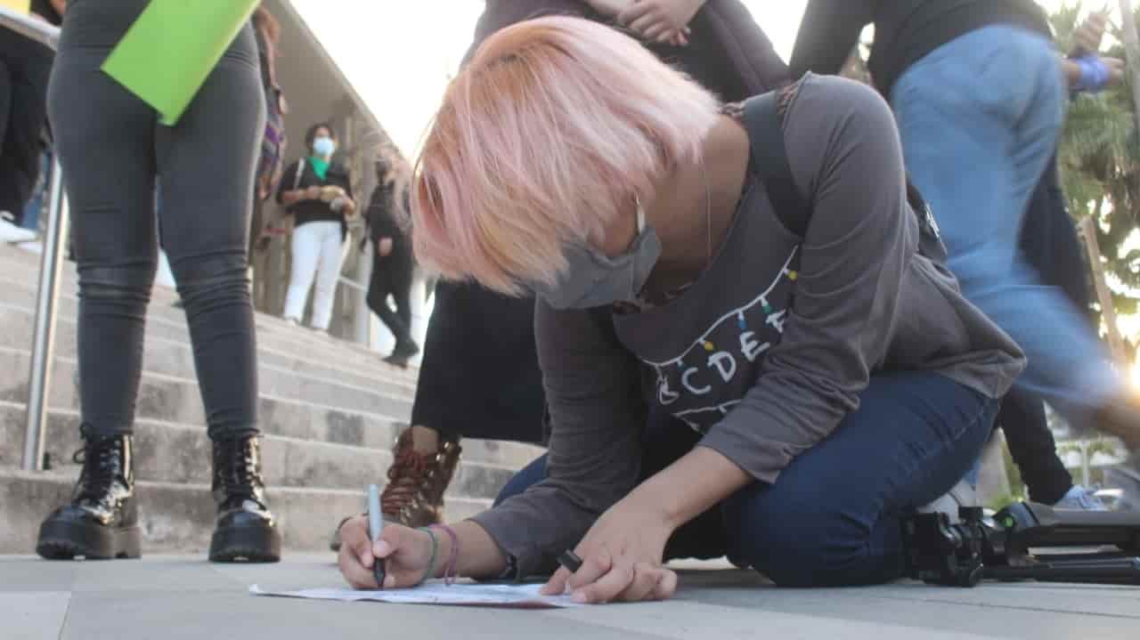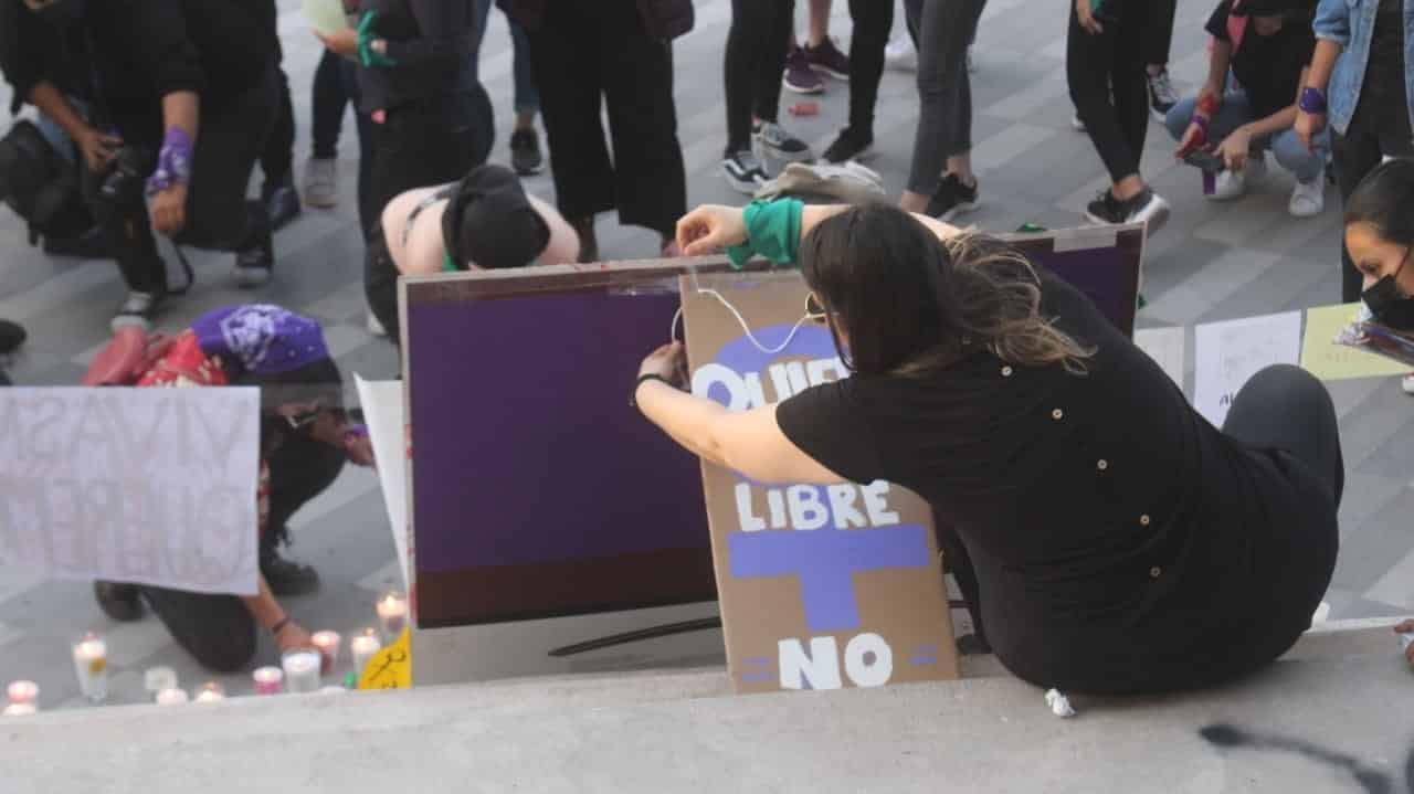 Cabe mencionar que al finalizar la el mitin en el teatro, colocaron veladoras en memoria de las víctimas de feminicidio. Además, pintaron la banqueta y escalones del recinto con algunas consignas.
