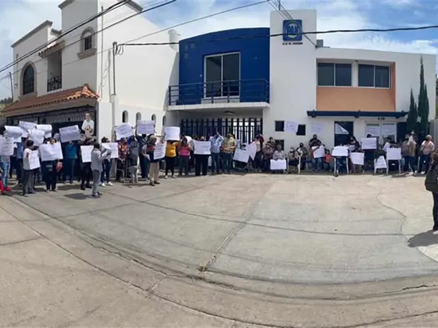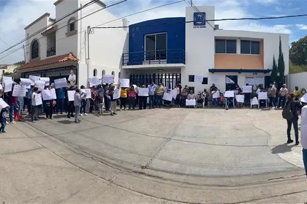 Los manifestantes se mantienen al exterior del Comité Municipal del PAN y exigen al presidente estatal del partido, Juan Carlos Estrada Vega, que se presente para rendirles cuenta respecto a los convenios y negociaciones en torno a las candidaturas.