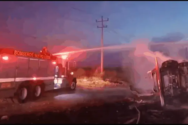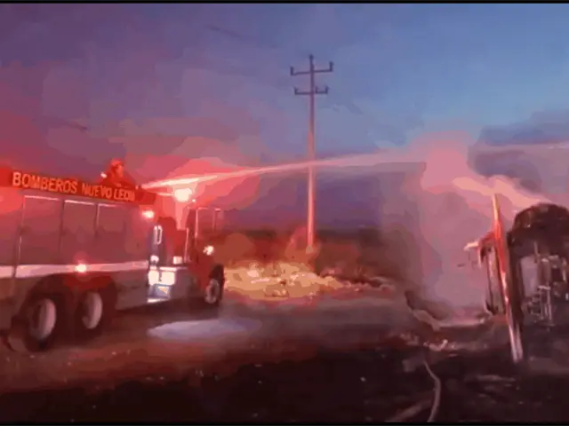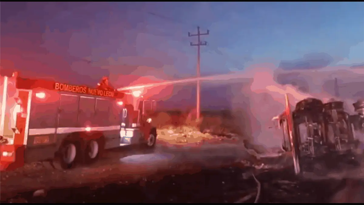 Por su parte, los Bomberos de Nuevo León compartieron un video en el que se aprecia el incendio provocado por el accidente y a los trabajadores de este cuerpo tratando de sofocar las llamas.