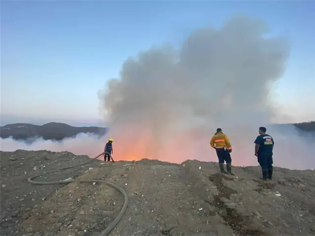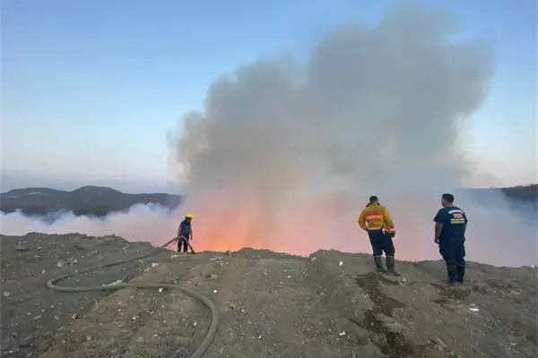 Mazatlán, Sin.- Personal de Bomberos Mazatlán se movilizó la tarde de este jueves hacia las inmediaciones del basurón municipal del puerto, luego de que cerca de las 18:00 horas recibieron el reporte de un voraz incendio en la zona.