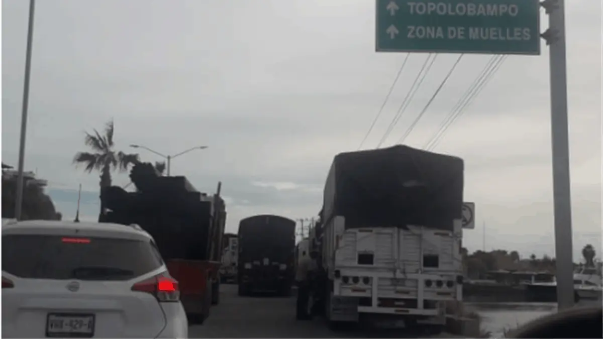 Sin embargo, el inflexible control de ingreso, ocasiona que decenas de unidades tengan que esperar afuera del área federal, afectando el flujo vial de la carretera Mochis-Topolobampo y el acceso al puerto.