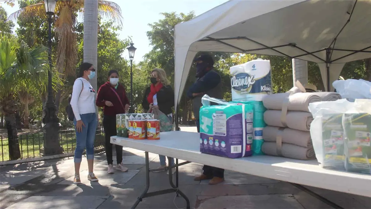 Durante los sábados del mes de marzo se instala por cuatro horas en la plazuela 27 de Septiembre una mesa de recepción de ayuda tanto en pañales, alimentos no perecederos y medicamentos.