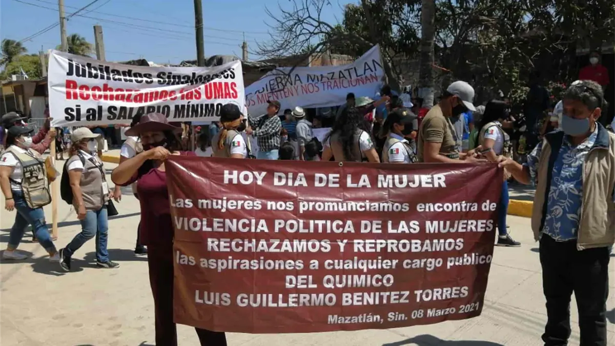 Entre las consignas que gritaban las personas está la petición de vivienda, pagos a maestros jubilados y que el alcalde con licencia, Luis Guillermo Benítez Torres, no regrese a la Presidencia Municipal.