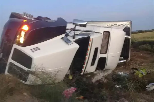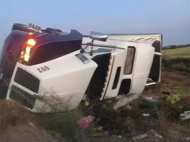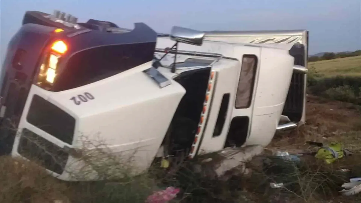 Vuelca camión en la carretera El Carrizo - El Fuerte