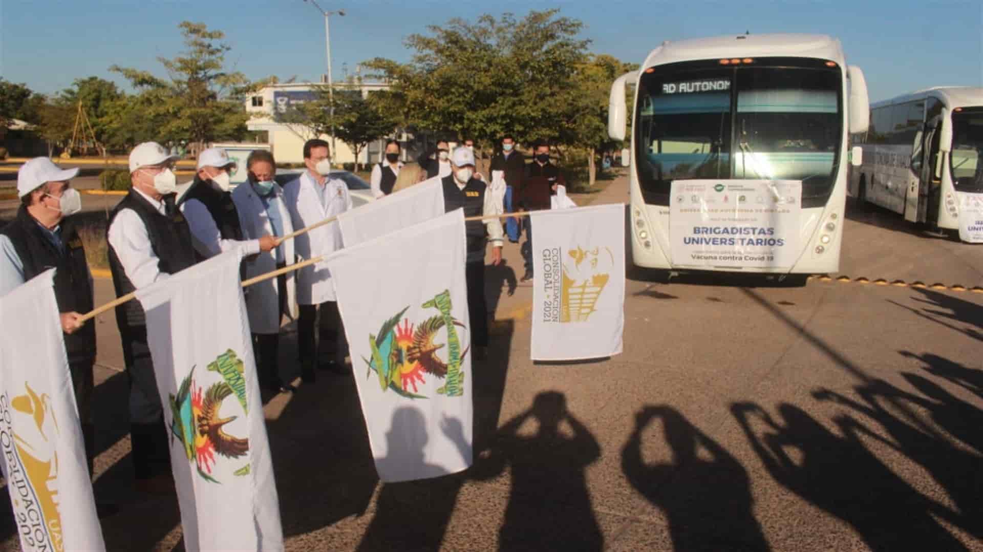 Los Mochis, Sin.- En punto de las 7:30 de la mañana de este sábado el rector de la Universidad Autónoma de Sinaloa dio el banderazo de salida de los brigadistas, que apoyarán en la vacunación de los adultos de más de 60 años en las zonas rurales de Ahome, Guasave y Sinaloa.