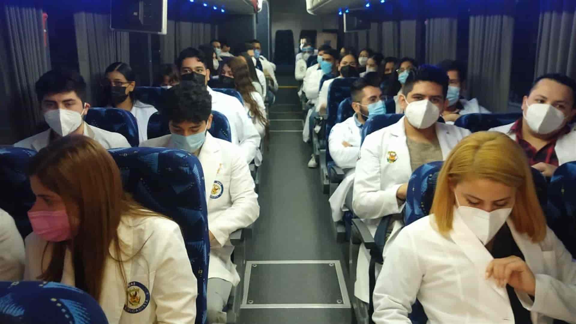 Culiacán, Sin.- Tras recibir el banderazo de salida, 54 brigadistas de las diferentes carreras del área de la Salud de la Universidad Autónoma de Sinaloa (UAS) partieron con destino al municipio de Salvador Alvarado, donde dará inicio la aplicación de la segunda dosis de la vacuna contra COVID-19 en adultos mayores de 60 años.