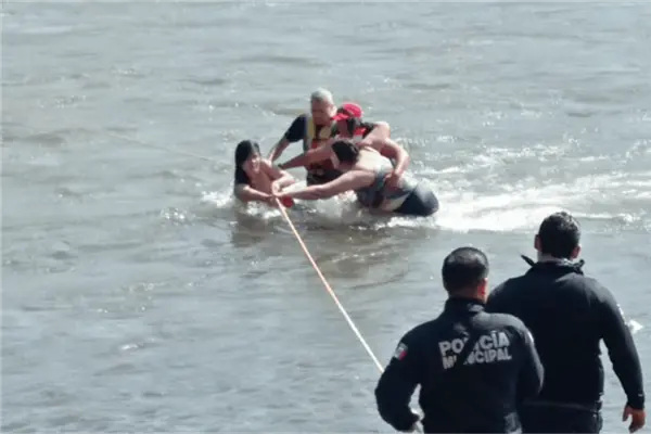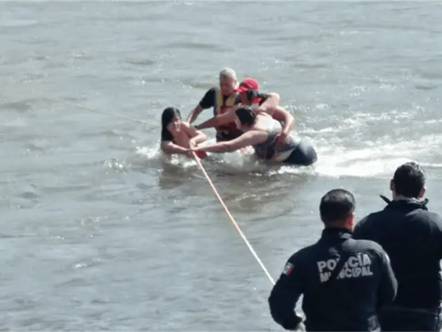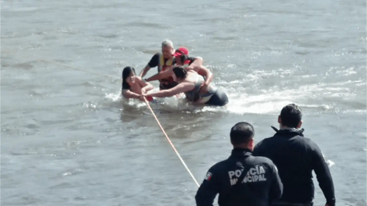 Los agentes se introdujeron al agua y, con ayuda de la cuerda que está instalada en ambos lados de la ribera del río, lograron sostener a las dos personas.