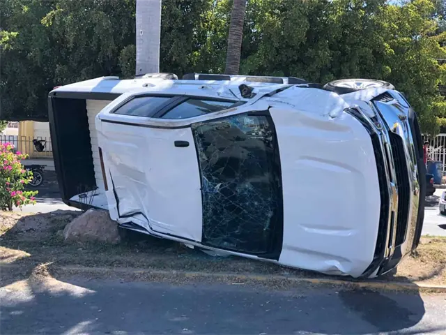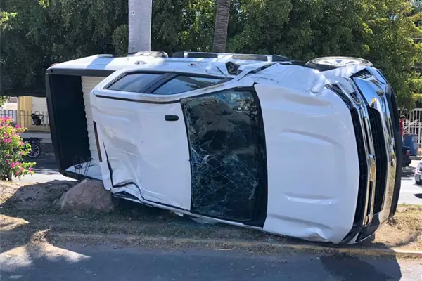 Guasave, Sin.- Una camioneta como pérdida total y daños superiores a los 40 mil pesos en otro vehículo, fue el resultado de un aparatoso choque que terminó en volcadura registrada en transitado crucero de la ciudad de Guasave; pese a la magnitud de los daños, las cinco personas que viajaban en las unidades resultaron ilesas.