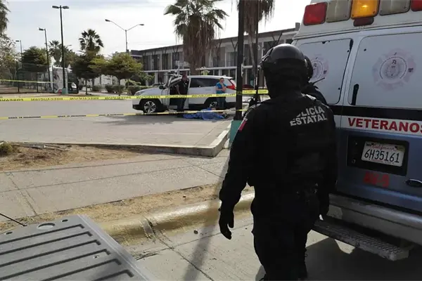 El cuerpo quedó tendido al costado de la unidad estacionada en uno de los cajones de estacionamiento del polideportivo, hasta donde arribaron elementos de la Policía Estatal y agentes de la Guardia Nacional.