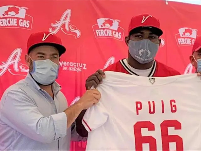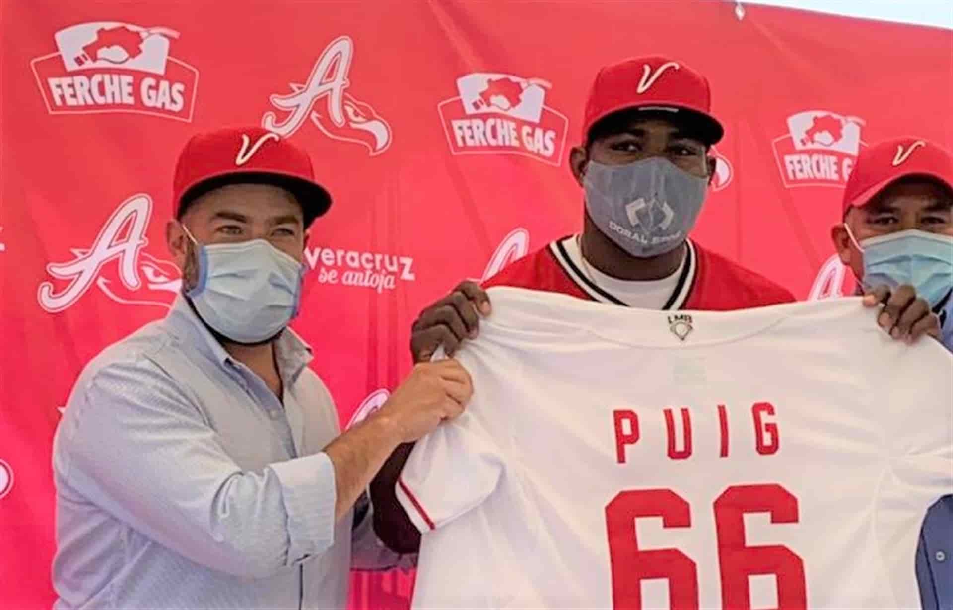 boca del Rio Ver.- El pelotero cubano Yasiel Puig fue presentado por la directiva del Águila de Veracruz ante los medios de comunicación este jueves.