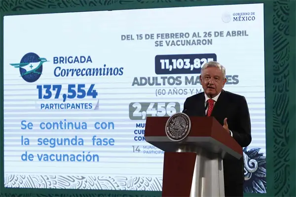 El anuncio de la nueva etapa del plan de vacunación de México ocurre después de completar la inoculación, con al menos una dosis, de 11.103.825 adultos mayores de 60 años en 2.456 municipios del país.