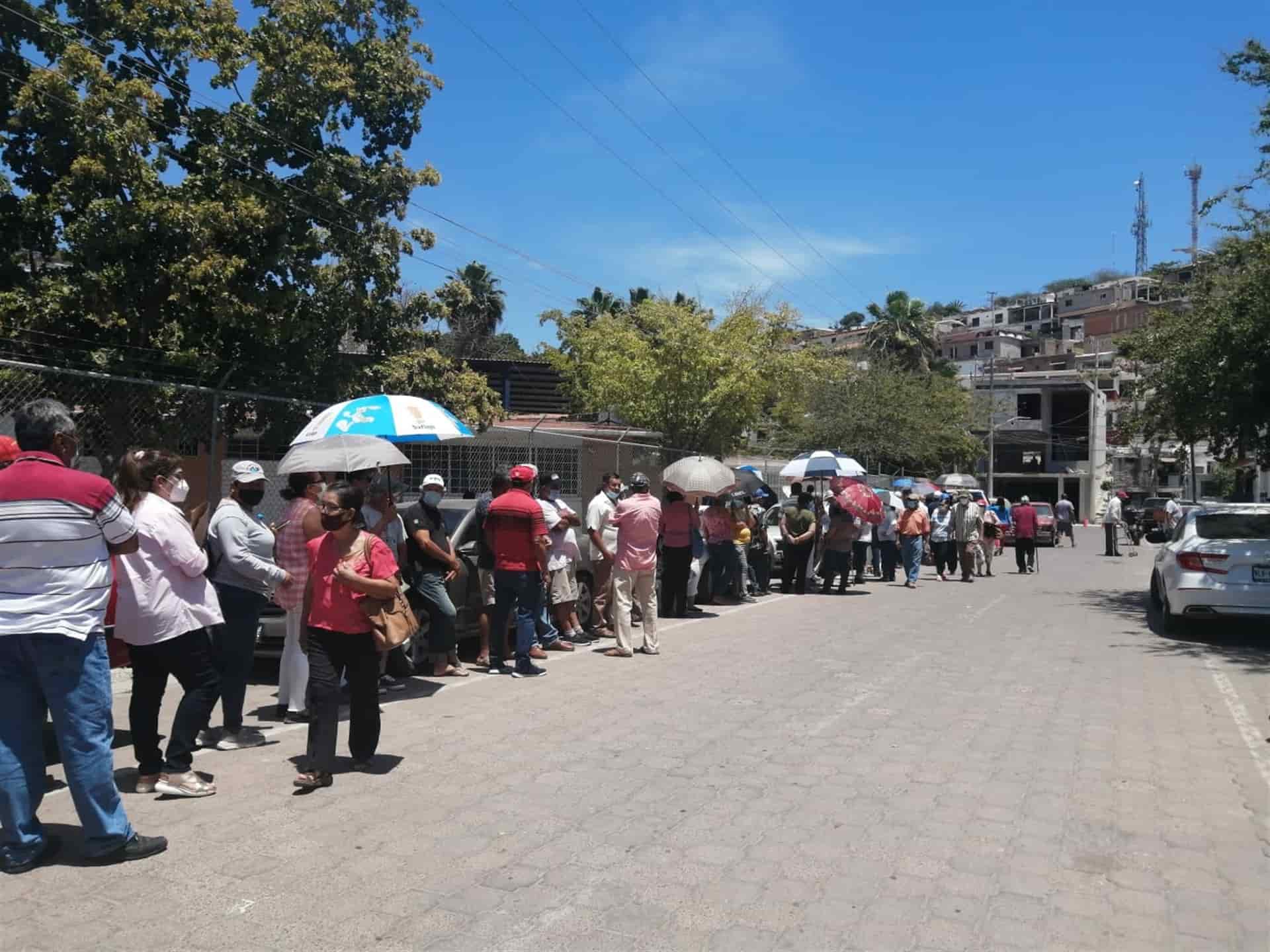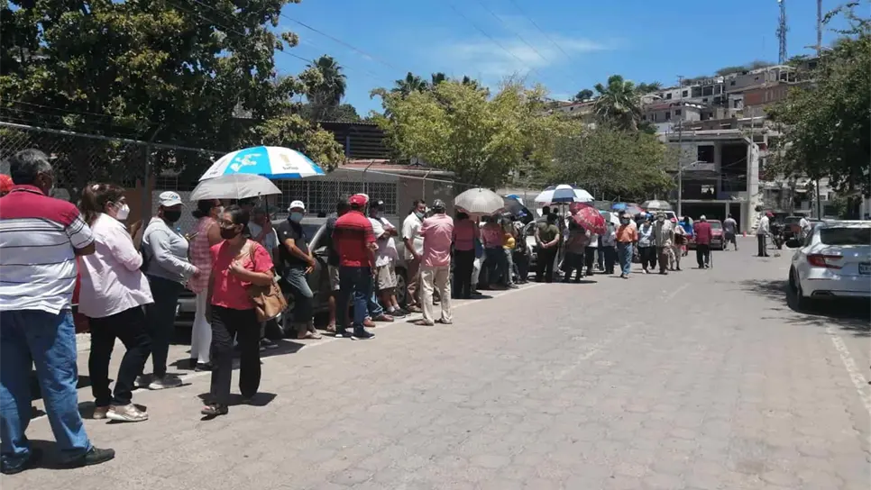 En el puerto de Topolobampo, desde antes de las 10:00 de la mañana, iniciaron las largas filas; sin embargo, el biológico llegó después de las 12 del día lo que provocó la molestia de algunos adultos.