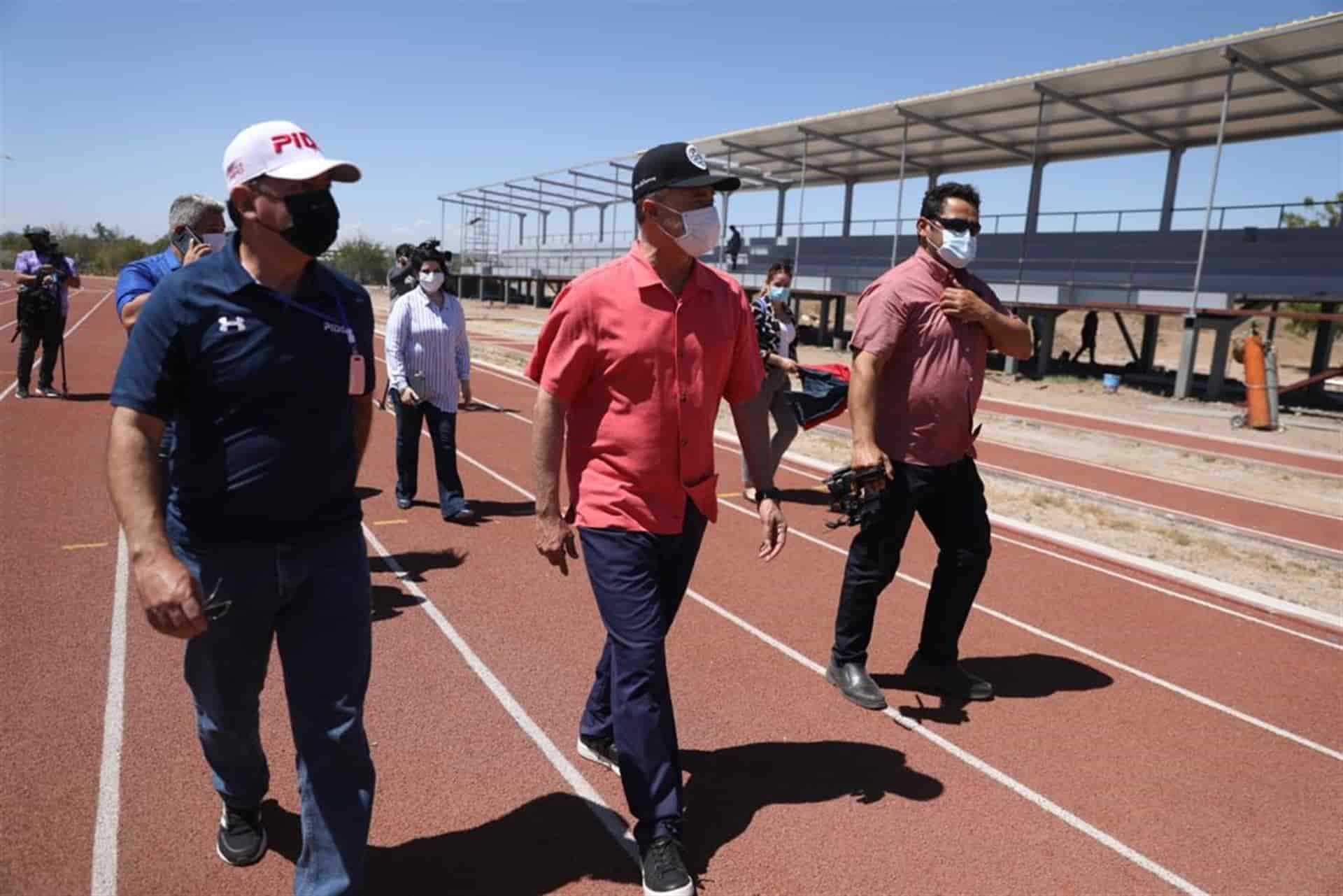 Para supervisar los avances en la pista, la cual se ubica a un costado del polideportivo María del Rosario Espinoza, el gobernador Quirino Ordaz Coppel y el Secretario de Obras Públicas, Osbaldo López Angulo, visitaron el lugar e hicieron un recorrido en el centro de boxeo, catalogado como el mejor del país, que junto a la ya existente pista BMX se superan los 100 millones de pesos en inversión.