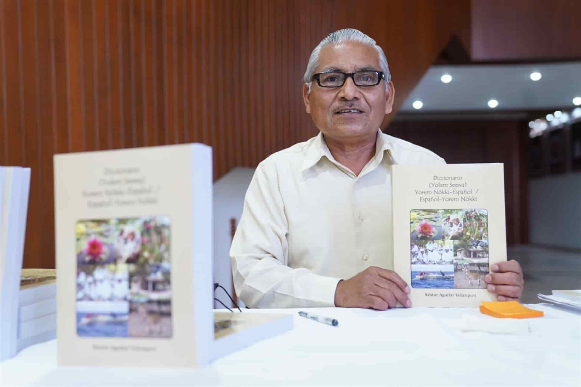 Culiacán, Sin.- En el lobby del Congreso del Estado de Sinaloa a invitación de la Comisión de Equidad, Género y Familia y del Instituto de Investigaciones Parlamentarias, el autor indígena, Néstor Aguilar Velázquez, presentó el Diccionario (Yolem Seewa) Yorem Nókki-Español/Español-Yorem Nókki.