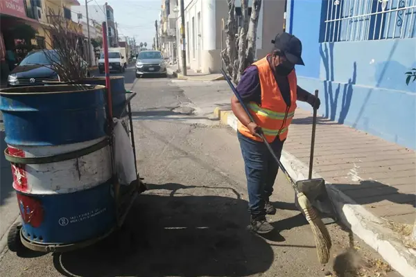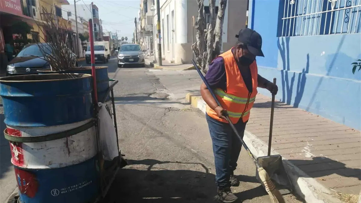 Suilma Fuentes expresó que vive en la colonia Azteca y como tiene asignado para barrido humano, el sector Centro de Mazatlán de lunes a sábado limpia las calles de esta zona con su carrito recolector a partir de las 6:00 de mañana.