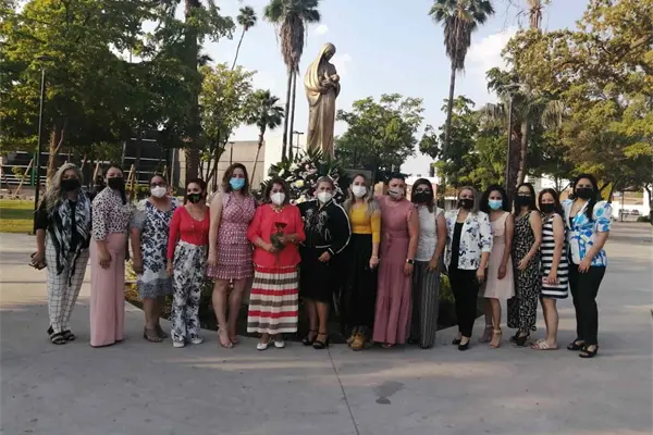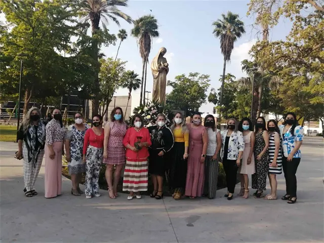 *María del Socorro Calderón Guillén y demás funcionarias de Ahome ofrecieron una ofrenda floral en el Monumento a la Madre de Los Mochis.