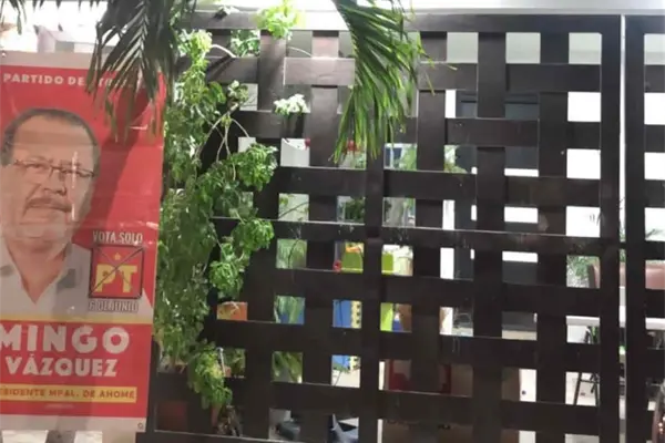 Los Mochis, Sin.- El trabajador que fue videograbado retirando un pendón de un domicilio particular en el fraccionamiento Platinos, asegura que no se percató de que se trataba de publicidad política.