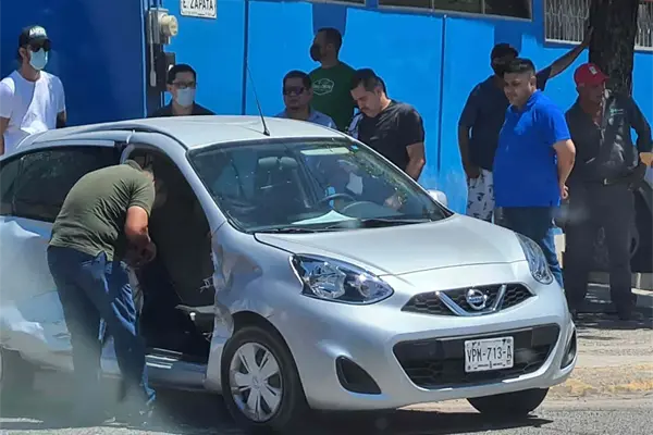 Según los datos recabados, el percance ocurrió en el cruce de las avenidas Emiliano Zapata y Miguel Hidalgo, dónde, a decir por los testigos, una camioneta Jeep Cherokee no respetó el alto correspondiente al dirigirse hacia el norte y chocó contra un Nissan March, color gris, que se dirigía al poniente.