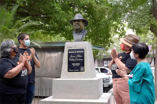 Al develar el busto en la plazuela Álvaro Obregón, junto a la catedral de Culiacán, la viuda dijo que Valdez "no merece el silencio" y exigió que "el crimen sea juzgado con perspectiva de libertad de expresión ya que no existe ninguna duda de que lo asesinaron por ser periodista”.