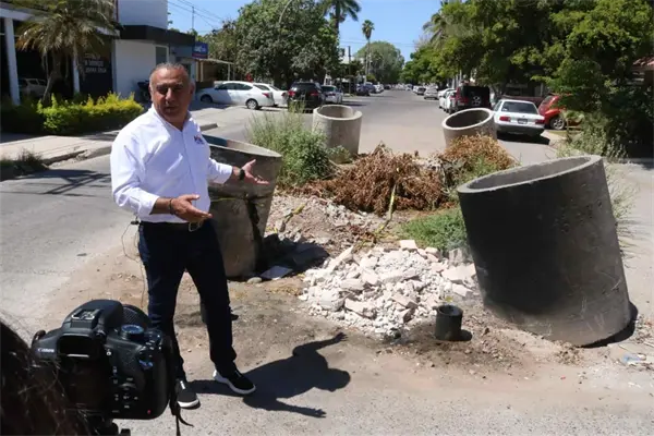 Marco Antonio Osuna Moreno acudió, este martes, como parte de su campaña, a constatar el problema del colapso del sistema drenaje que se padece desde hace casi 3 años.