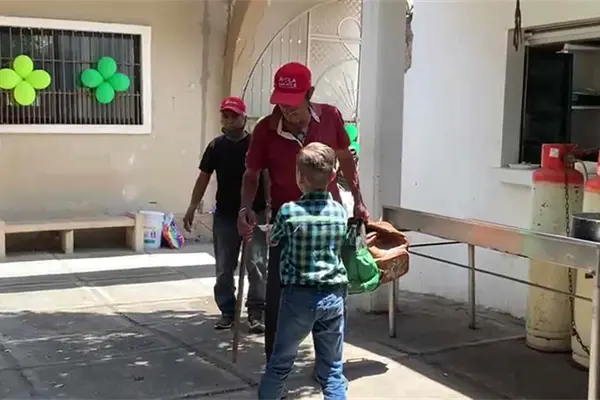 Culiacán, Sin.- Fue hace poco más de un año desde que inició la pandemia por Covid-19, desde entonces el pequeño Joel Humberto Zamorano Mariscal y su papá Miguel David quien no tenía trabajo, llegaron a la iglesia del Carmen en Culiacán en búsqueda de apoyo económico y terminaron quedándose como voluntarios del comedor comunitario para indigentes.