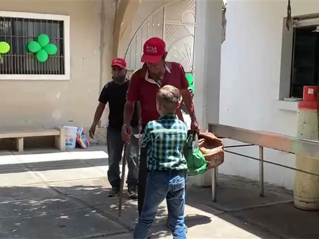 “Me gusta apoyarlos porque los quiero mucho... quiero compartir con ellos los dulces, el pastel, la comida, la piñata y todas las cosas... me gusta ayudarles a todos, vengo a darles comida, me emociono”, apuntó.