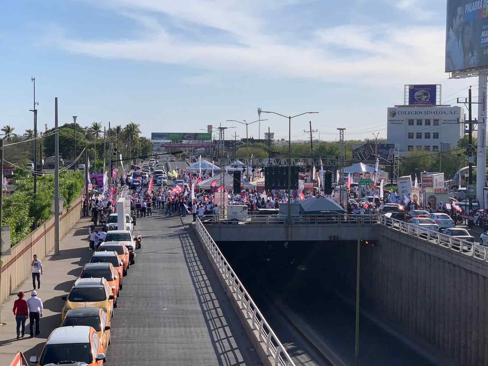 A pesar del caos vial prevalece por la cantidad de personas qué hay en el sector de la Universidad Autónoma de Occidente (UAdeO), donde se lleva a cabo el evento, solo hay porras de los candidatos Rubén Rocha Moya de Morena y PAS, Mario Zamora Gastélum de la Coalición PRI, PAN y PRD “Va por Sinaloa” y Sergio Torres Félix de Movimiento Ciudadano.