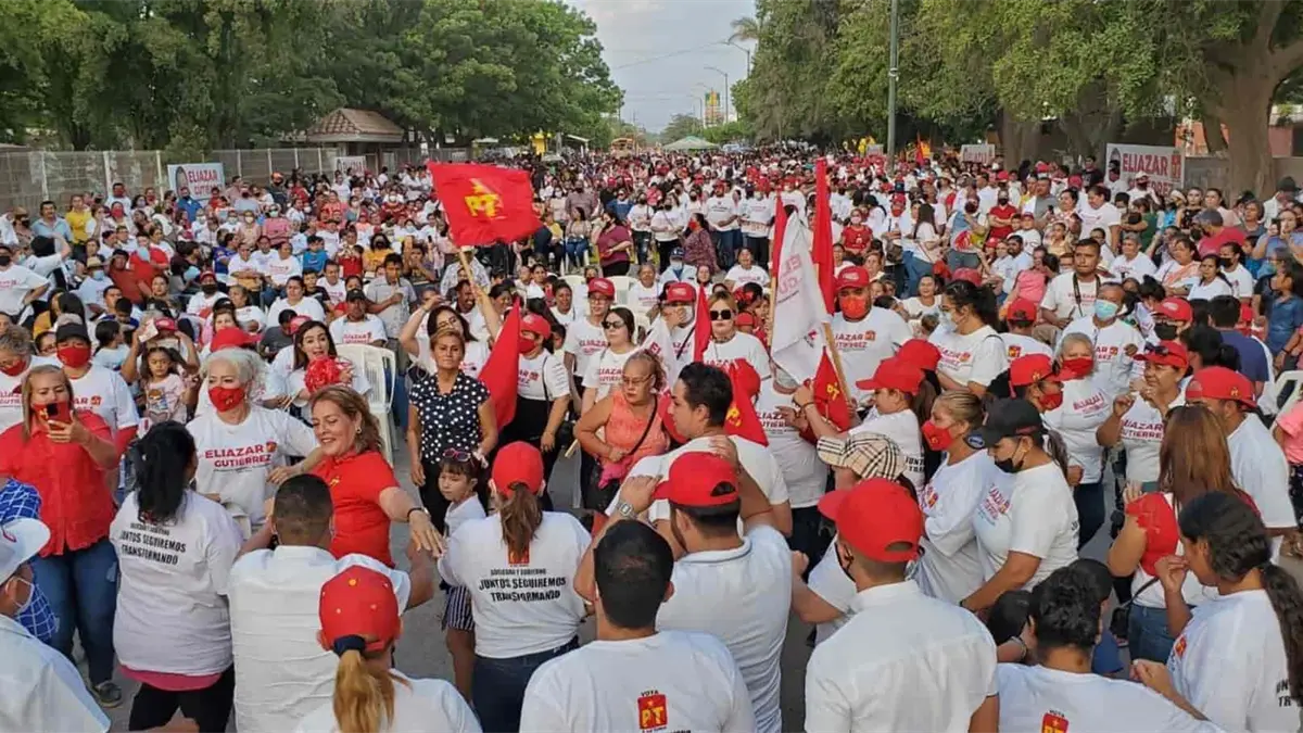 Navolato, Sin,- Un cierre de campaña en el cual participaron miles de personas, tuvo esta noche Eliazar Gutiérrez Angulo, candidato del PT a la presidencia municipal de Navolato, quien aseguró: “aquí no se simula nada, todo es real y con este fuerte respaldo del pueblo, claro que vamos a lograr un triunfo contundente el 6 de junio”.
