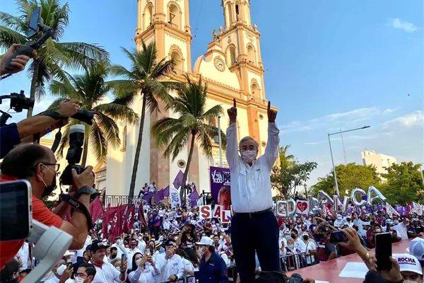 Culiacán, Sin.- Al aire libre y con la asistencia de 10 mil personas, el candidato a la gubernatura de Sinaloa por Morena- PAS, Rubén Rocha Moya finalizó su campaña en la avenida principal de Culiacán.