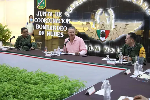 Culiacán, Sin.- Ante la sequía que atraviesa el estado de Sinaloa el gobernador Quirino Ordaz Coppel se reunió con mandos de la Fuerza aérea Mexicana y con la Comisión Nacional de Zonas Áridas para iniciar con el proyecto de bombardeo de nubes que buscará incentivar lluvias en las regiones más afectadas.