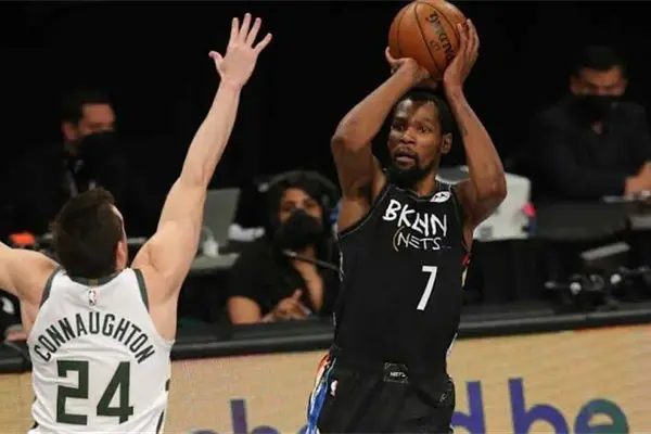 Kevin Durant dejó todo en el juego, pero no le alcanzó para que los Nets se llevaran el encuentro; el basquetbolista estuvo a 1 centímetro de darle el pase a la final de conferencia a su equipo, pero su tiro contó por 2, por un centímetro.