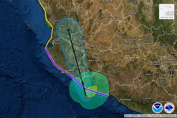 La Conagua informó de una zona de prevención por vientos de tormenta tropical desde Lázaro Cárdenas, Michoacán, hasta Cabo Corriente, Jalisco, además de una zona de vigilancia por vientos de huracán.