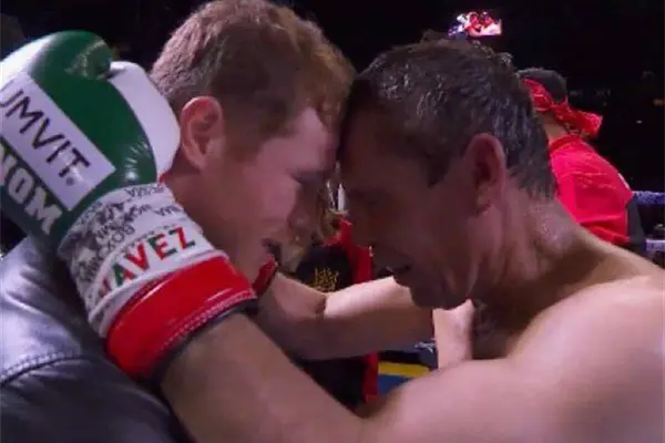 “Quiero decirles que muchas gracias, no me voy a volver a subir a un ring en una exhibición, ya mi cuerpo está cansado", fueron la palabras de la leyenda, quien fue abrazo por Canelo Álvarez al final del combate.