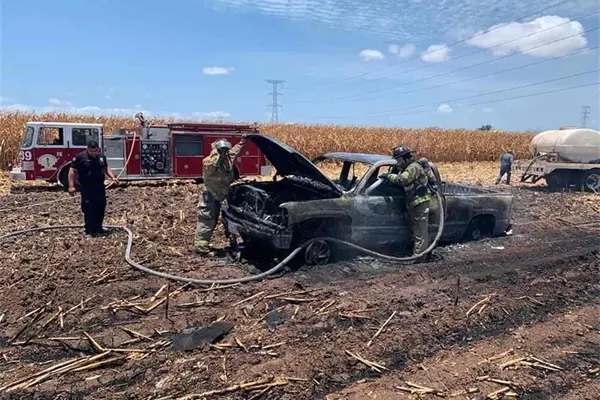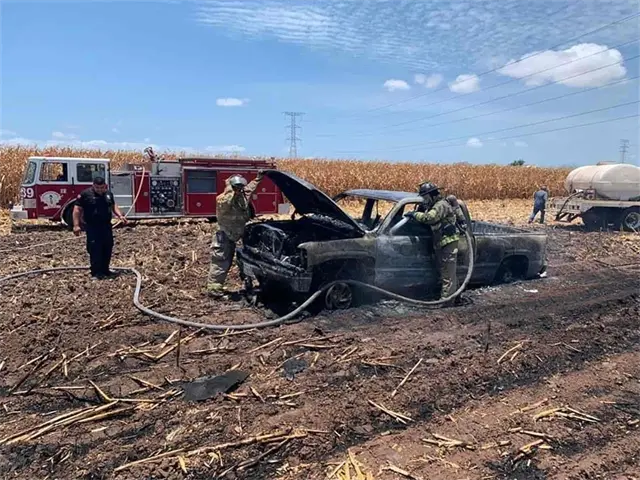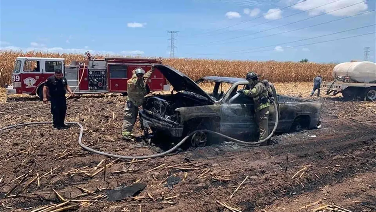 Los Mochis, Sin.- Una camioneta se incendió y terminó calcinada, con pérdida total, tras sufrir un aparente cortocircuito, mientras encontraba en una parcela, en las inmediaciones del ejido Paredones, sindicatura de Topolobampo.