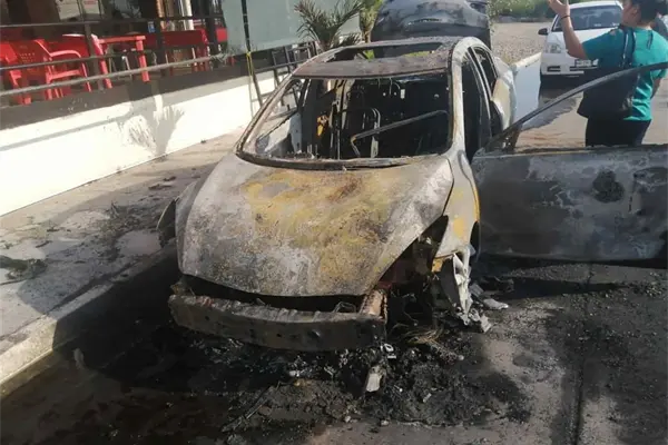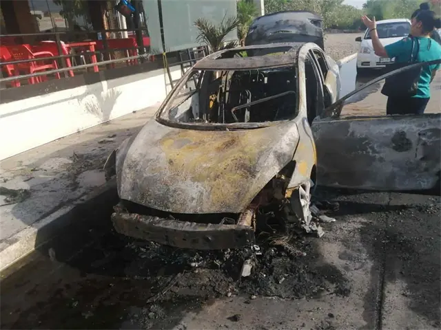 Vehículo termina calcinado frente a restaurante de mariscos en Guasave