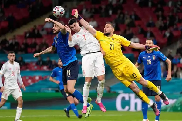 Inglaterra.- Esta tarde se llevó a cabo el encuentro de semifinales de la Eurocopa, entre la selección de Italia y la selección española, el cual se disputó en la cancha de Wembley.