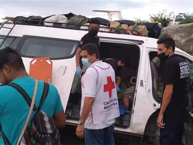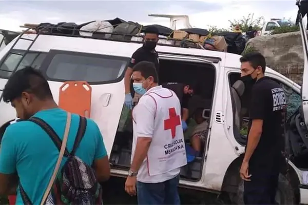 Escuinapa, Sin.- Nueve trabajadores de un empaque de mango del municipio de El Rosario sufrieron lesiones de leves a graves al volcar el vehículo tipo van en el que viajaban, sobre la carretera México 15, a la altura de la zona conocida como Cerro Bola.