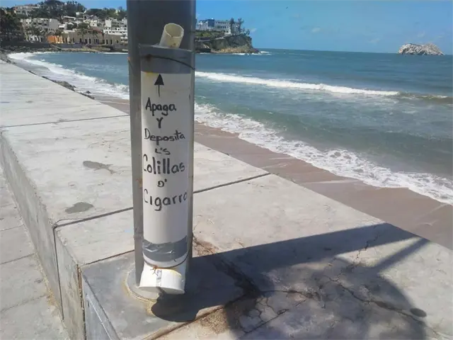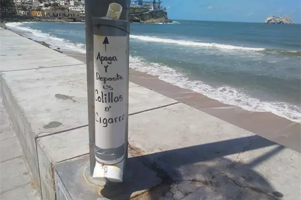 Dijo que colocaron 24 colilleros a lo largo del malecón en zonas aledañas a las palapas o restaurantes, de los cuales nomás quedan 11 piezas, e instalaron dos más en playa Norte y queda uno, porque el otro fue desprendido y tirado en la misma zona.