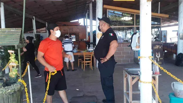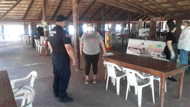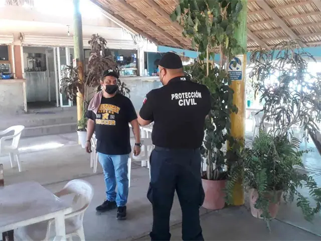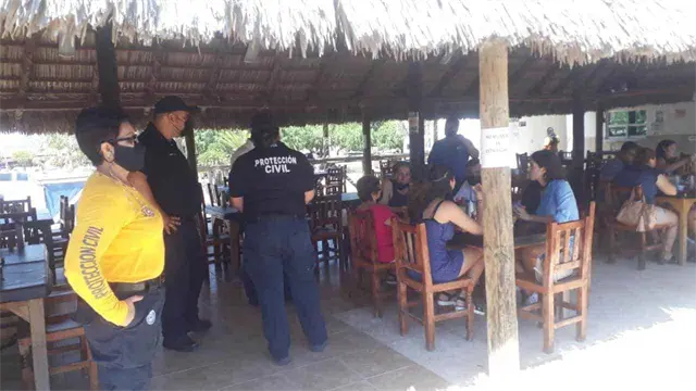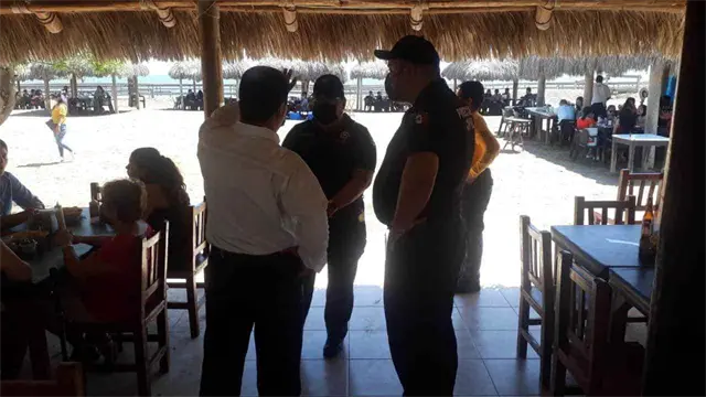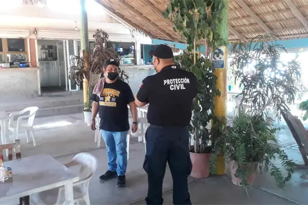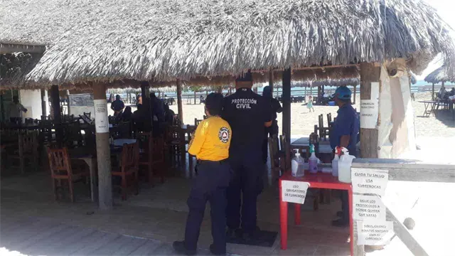 Los Mochis, Sin.- Personal de Protección Civil de Ahome en coordinación con Seguridad Pública supervisaron los protocolos sanitarios anticovid en Los restaurantes de la playa El Maviri y, además, retiraron a los civiles de las áreas conocidas como "puntillas".