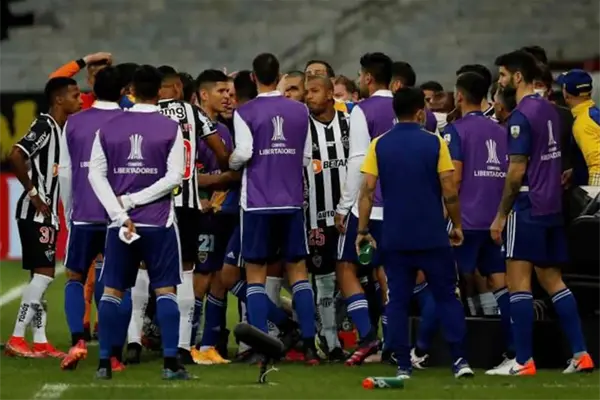 Tras una polémica con el (VAR) los jugadores de Boca se fueron con todo en contra del arbitraje y de los jugadores del equipo brasileño, tal discusión terminó hasta en los corredores del estadio, donde se tuvo que meter la policía, usando gas lacrimógeno, en contra de los jugadores del equipo argentino.
