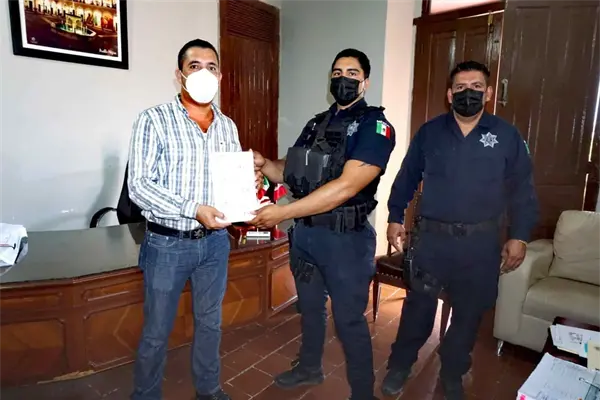 El Fuerte, Sin.- El Secretario de la Comuna fortense, Leonel Vea Gámez, en representación de la Alcaldesa Nubia Ramos Carbajal, hizo entrega de los vales de despensa a los agentes de policía adscritos a la Dirección de Seguridad Pública, esto como parte del programa de apoyo económico que se implementa en la administración municipal.