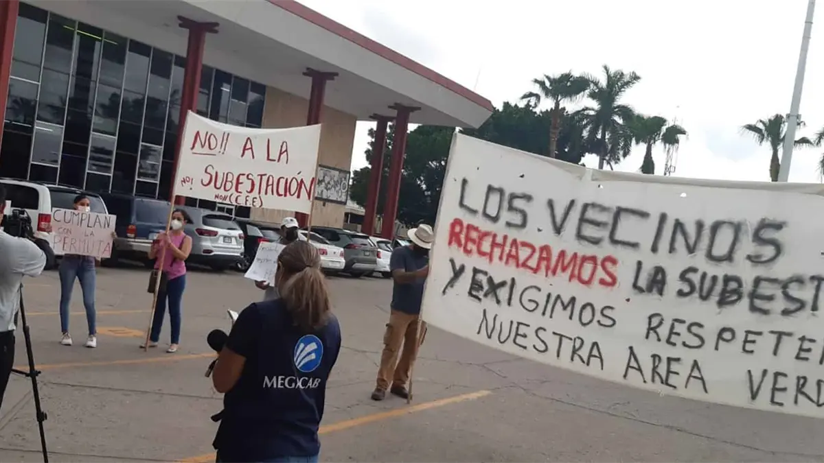 Los Mochis, Sin.- Un grupo de vecinos del fraccionamiento Bosques del Pedregal se manifestó, este miércoles, en las oficinas del Ayuntamiento de Ahome para exigir al alcalde Manuel Guillermo Chapman Moreno que intervenga para evitar la instalación de una subestación eléctrica en el parque del fraccionamiento, por parte de la Comisión Federal de Electricidad (CFE).