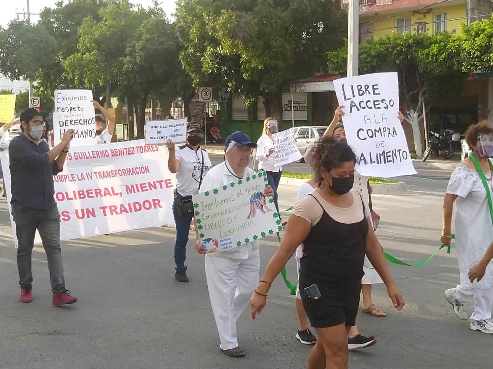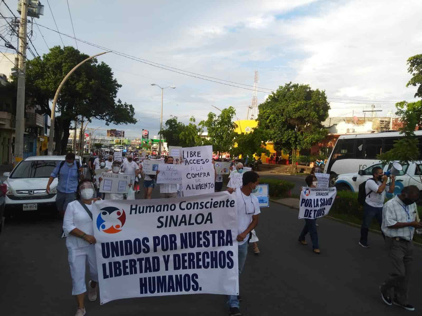 Mazatlán, Sin.- Más de una centena de mazatlecos marchó de manera pacífica para exigir a las autoridades que se elimine el requisito de pedir certificado de vacunación para entrar a espacios públicos.