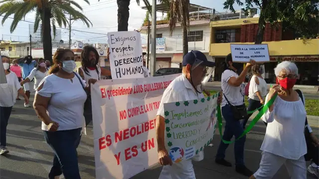 Los inconformes - la mayoría vestidos de blanco - marcharon con lonas y pancartas; algunos coreaban a capela o con ayuda de un altavoz palabras como "Respeto, respeto, a los derechos humanos".
