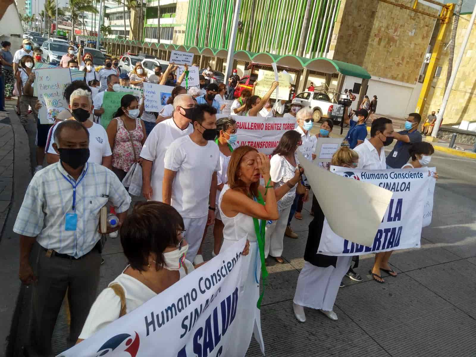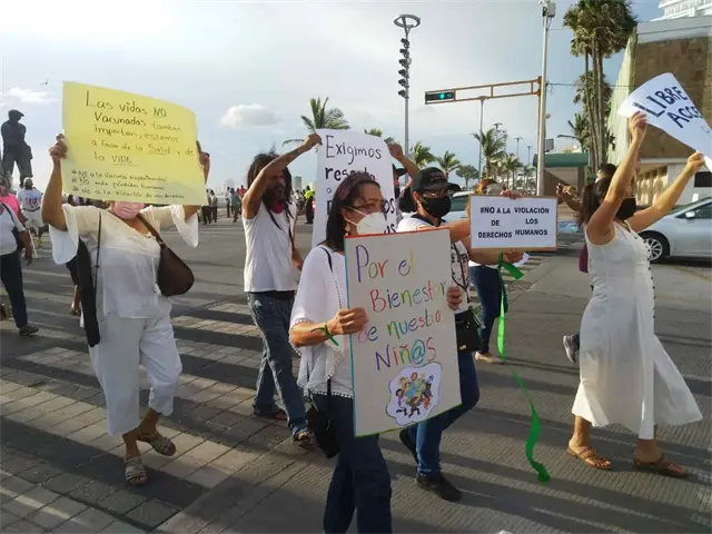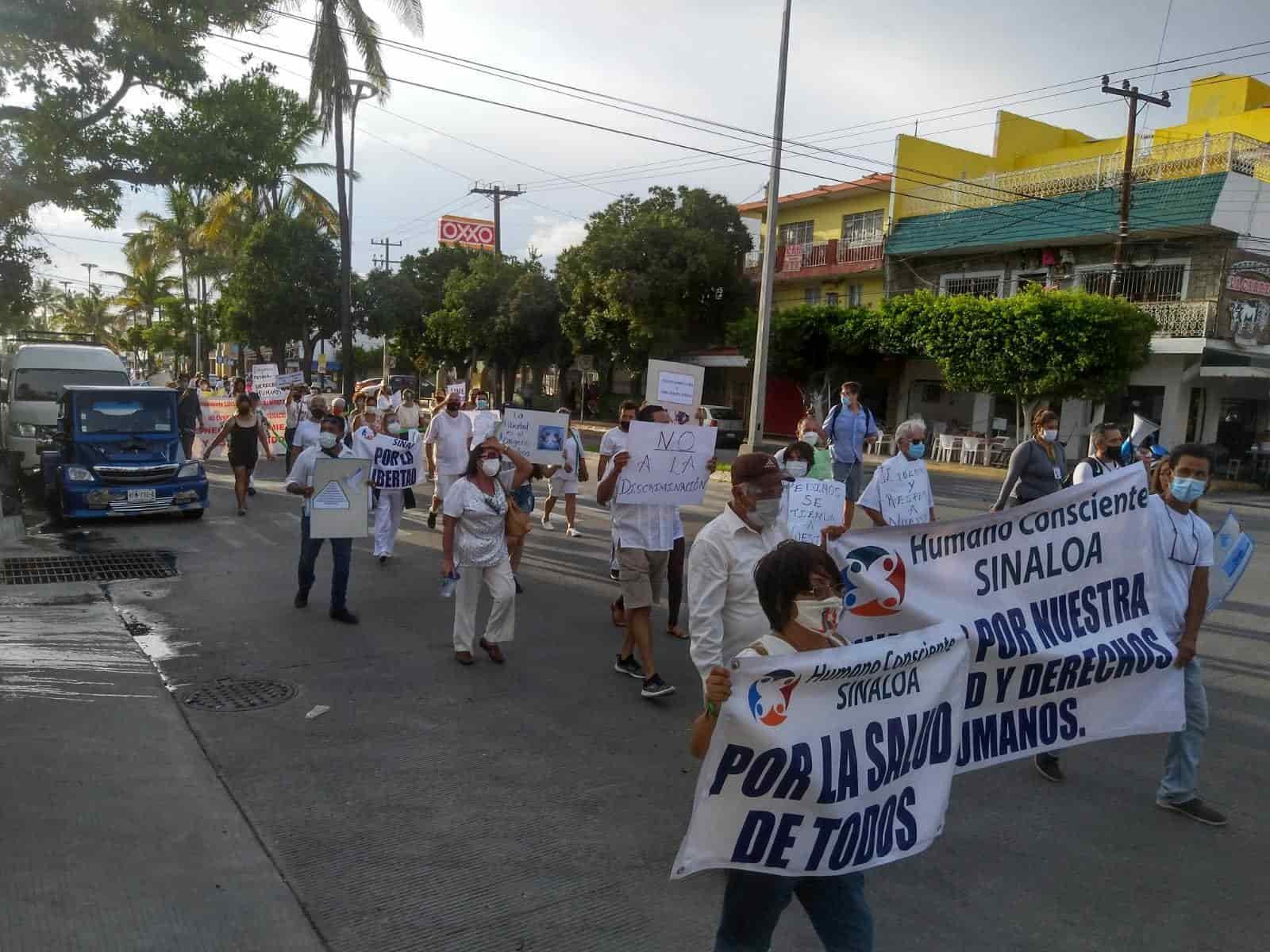Con marcha, mazatlecos exigen que ya no se pida el certificado de vacunación