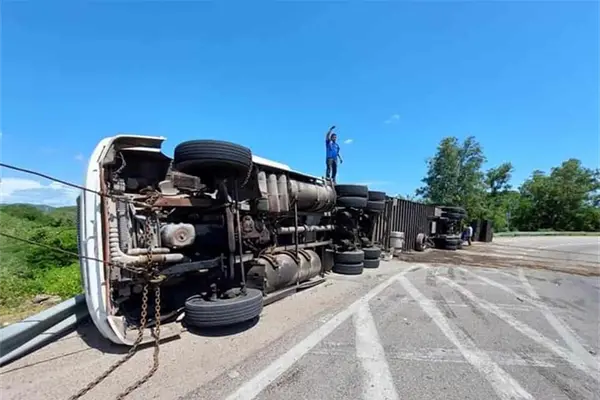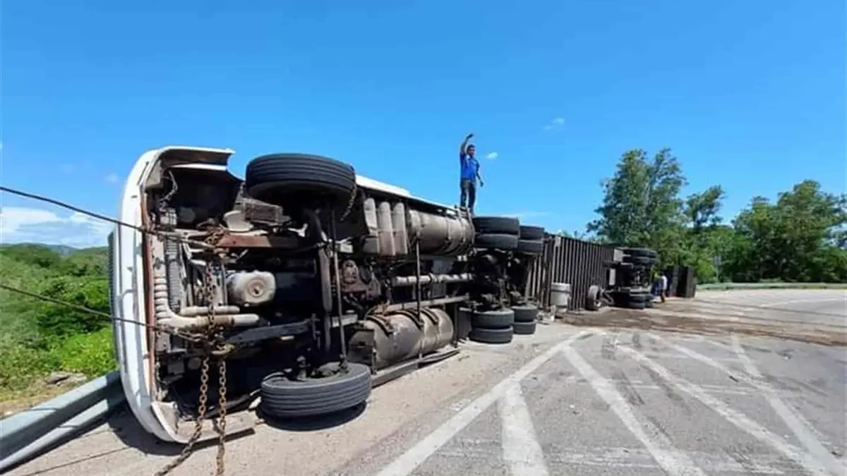 Vuelca tráiler en autopista Mazatlán-Culiacán, a la altura de El Venadillo