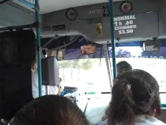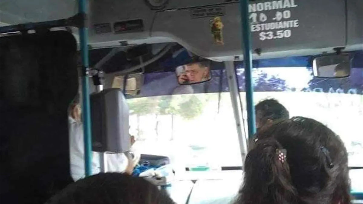 Los Mochis, Sin.- Usuarios del transporte urbano exhiben en fotografías a un operador que no exige a los pasajeros el correcto uso de cubrebocas y conduce hablando por teléfono celular en la ruta: Campo 3 - Canteras, en la ciudad de Los Mochis.