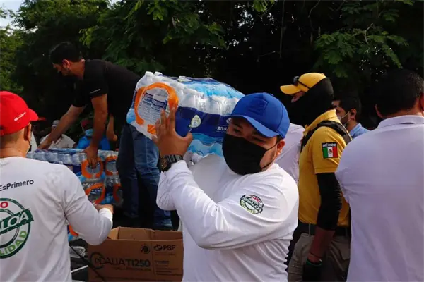 Durante su visita en los campos pesqueros entregaron despensas, desayunos escolares, agua embotellada, kits de limpieza y colchonetas a los pobladores afectados